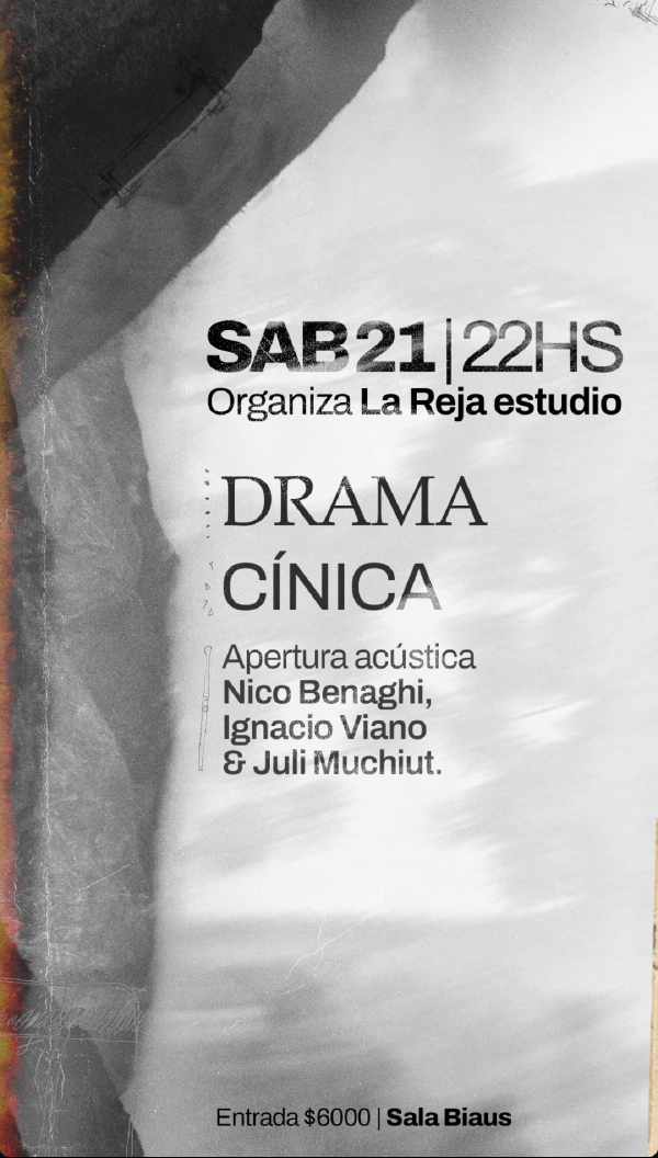 Cínica y Drama en La Reja Estudio Fest21 marzo 2026Cínica DRAMA Nicolas Benagui Ignacio Viano Julián Muchiut Sala Biaus